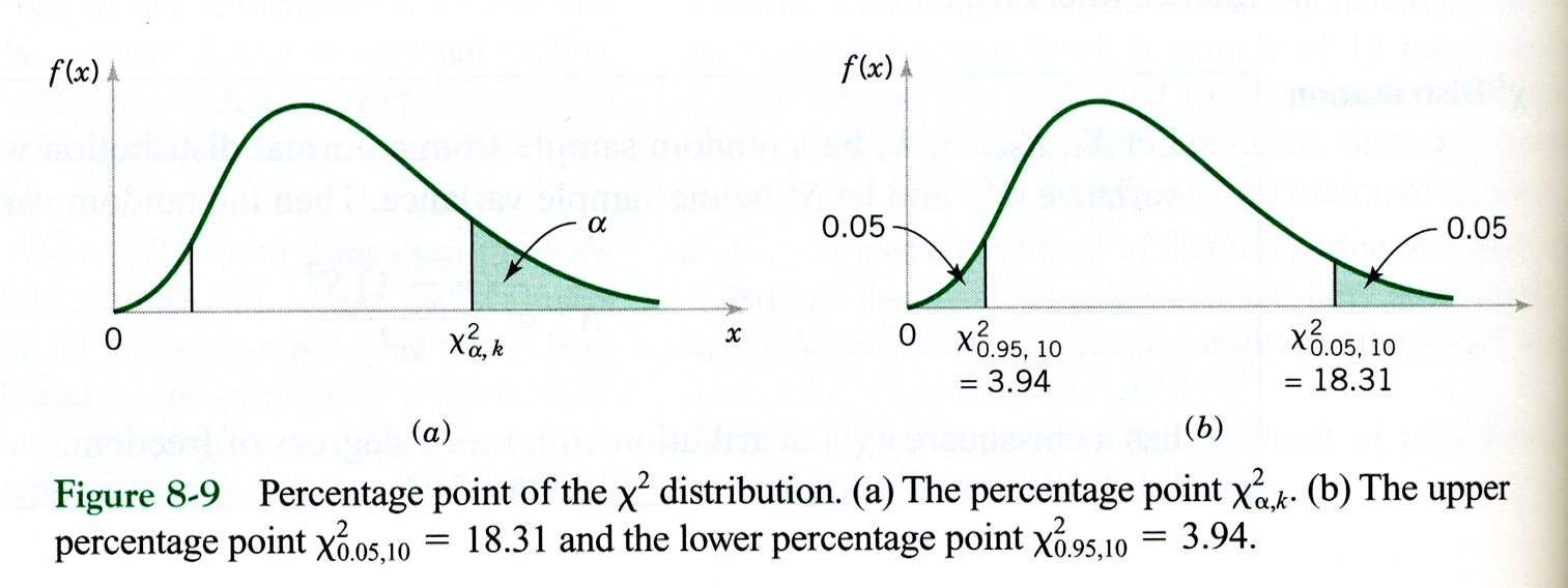 Figure 8-9 on page 183 explains the percentage points of the \(\chi^2\) distribution