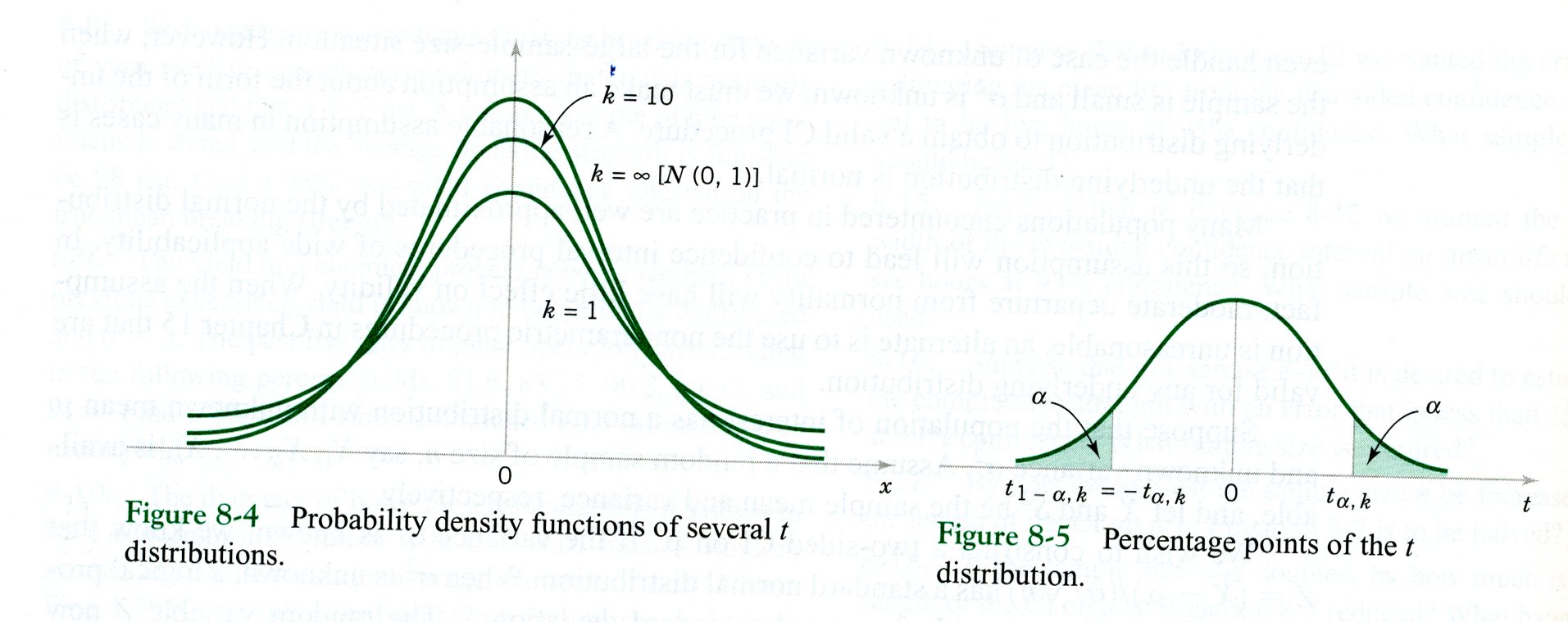 Figure 8-5 explains the percentage points of the \(t\) distribution