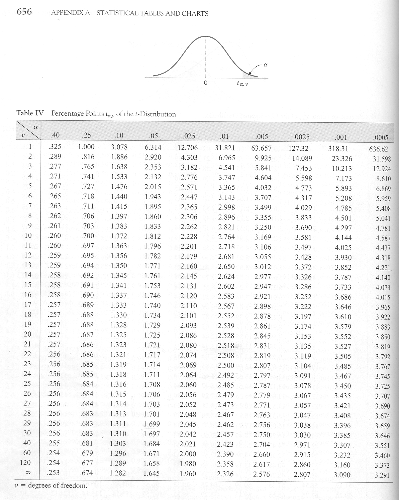 where \(t_{\alpha/2,n-1}\) is the upper \(100(\alpha/2)\) percentage point of the \(t\) distribution with \(n-1\) degrees of freedom.