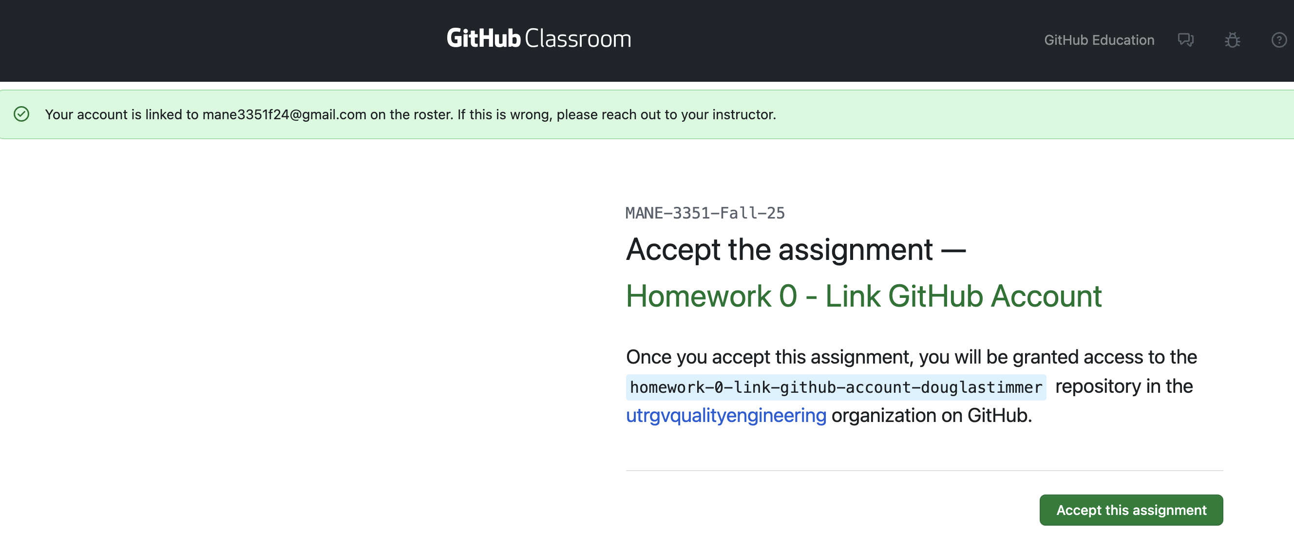 - The purpose of Homework 0 is to link your GitHub account to GitHub classroom and your UTRGV email address