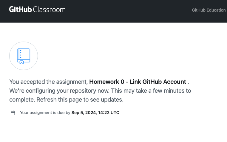 - Link personal GitHub account with GitHub Classroom