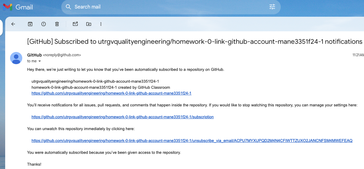 - Eventually, a link will be provided to the repository created using GitHub Classroom