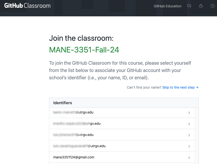 - Your GitHub classroom identifier is your UTRGV email account name