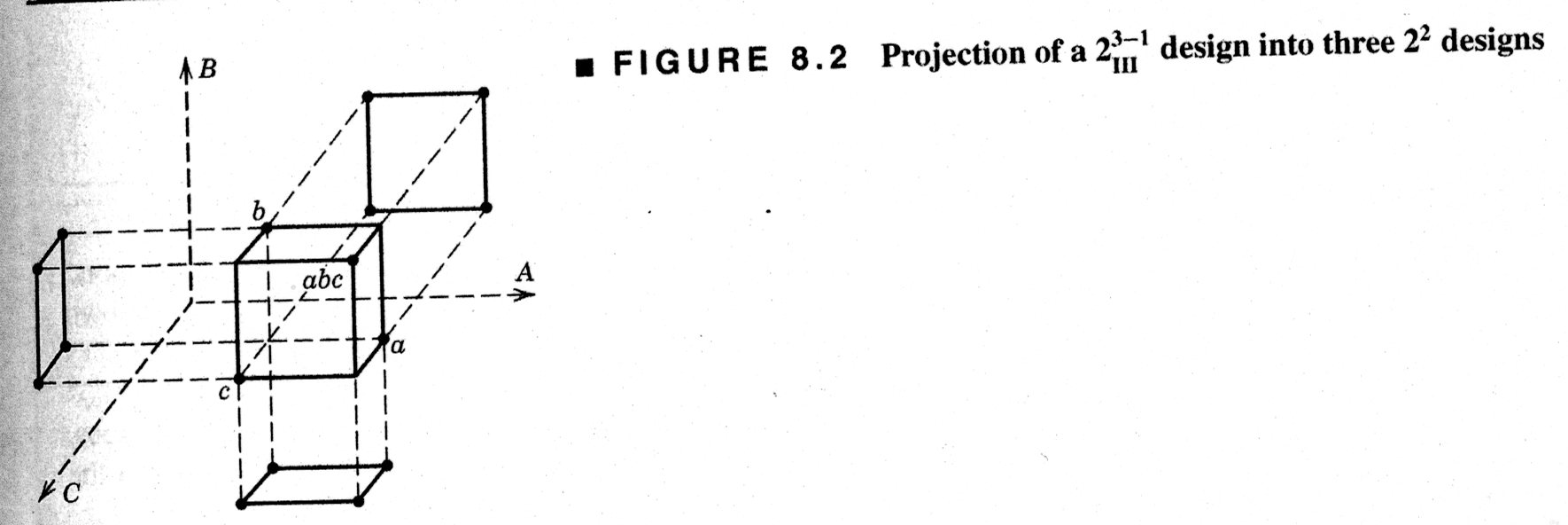 Any fractional factorial design of resolution \(R\) contains complete factorial designs (possibly replicated factorials) in any subset of \(R-1\) factors