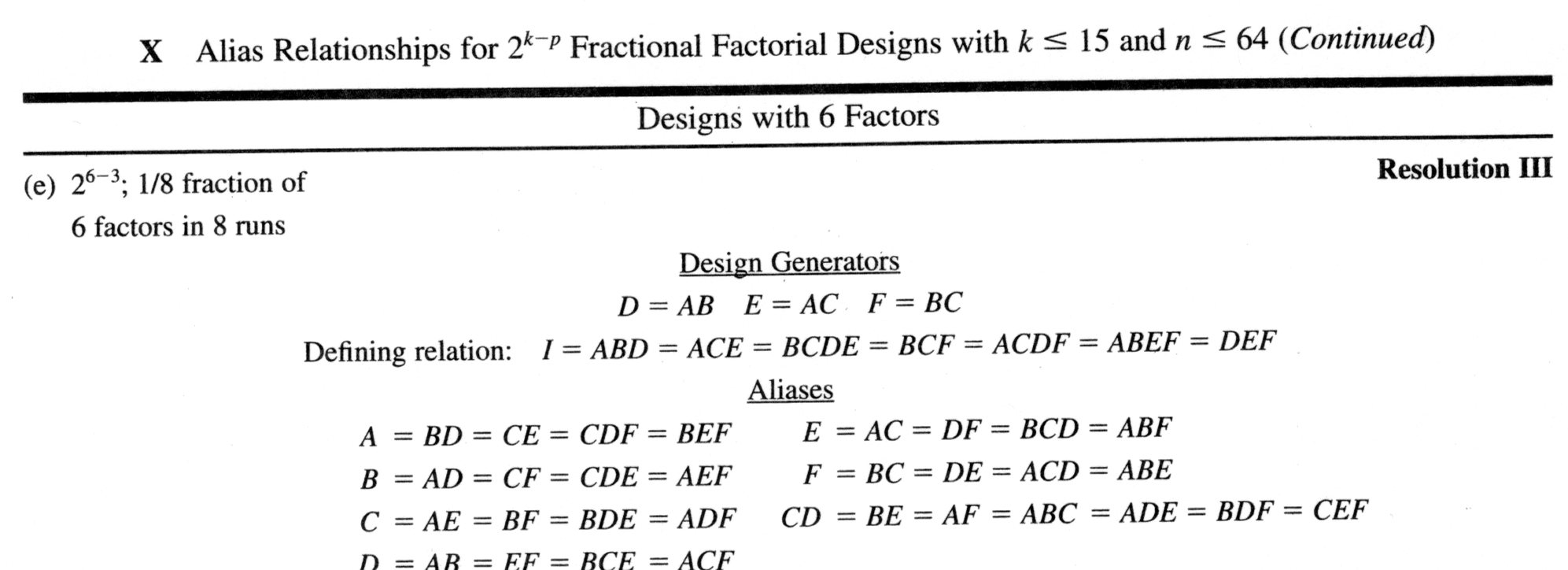 A \(2^k\) fractional factorial design containing \(2^{k-p}\) runs is called a \(1/2^p\) fraction of the \(2^k\) design