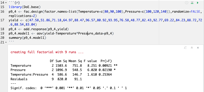 - The two-factor interaction contains four degrees of freedom: \(AB_{L\times L},\,AB_{L\times Q},\,AB_{Q\times L},\,AB_{Q\times Q}\)
