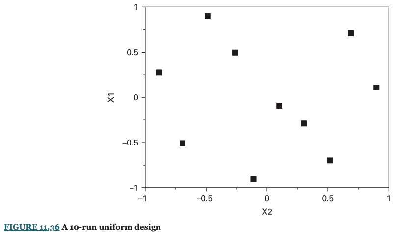 Goal is place the design points so that they are uniformly scattered through the regions as would a sample from a uniform distribution.