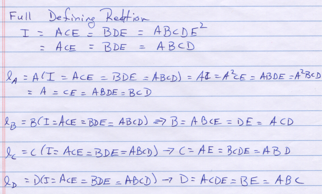 Don't forget the generalized interaction. The complete defining relation is \(I=P=Q=PQ\)