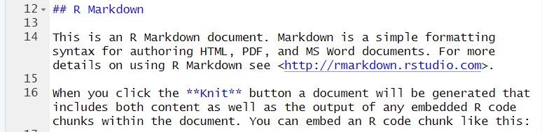 Markdown codes appear in lines 12 - 16 of the file. A separate module will cover Markdown