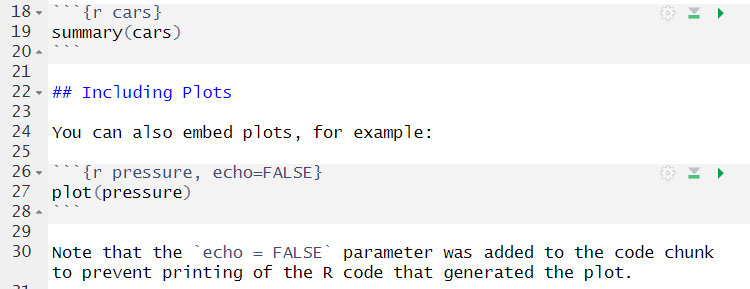 R Code is displayed in the grey box. R Code snippets have the structure of