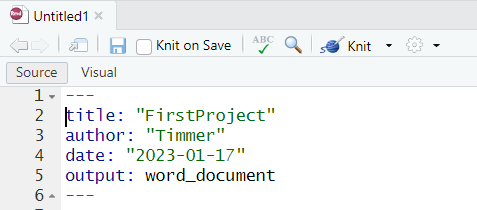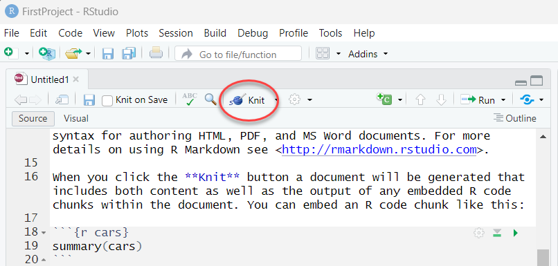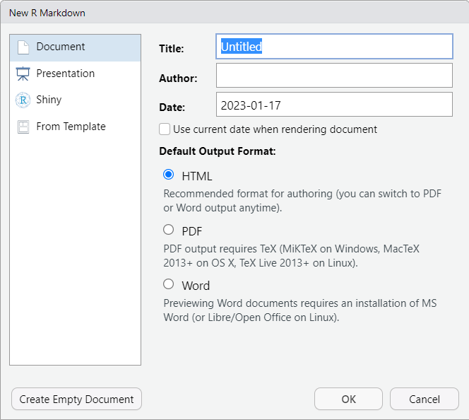 - Give title for the R Markdown document in the Title field
