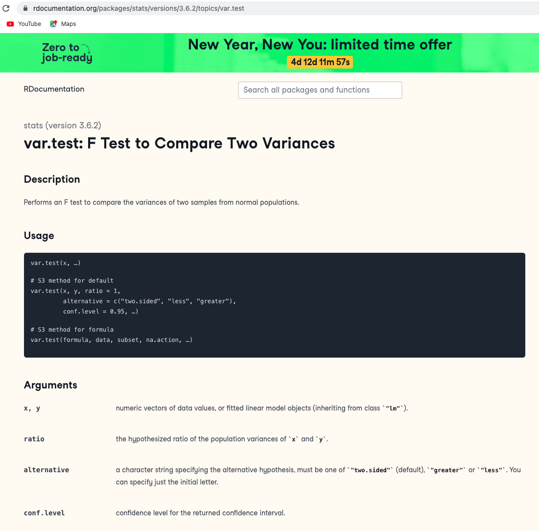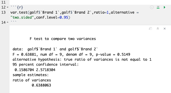 R Documentation for F-test¶